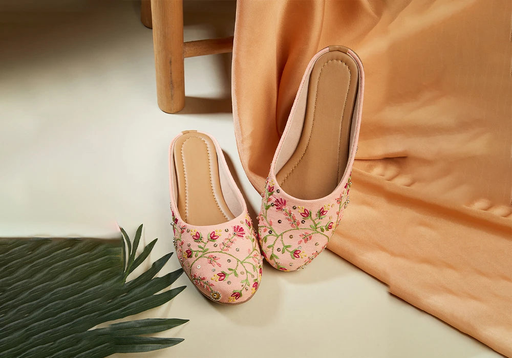 Let your feet bloom with elegance—slip into this embroidered beauty and embrace timeless tradition.