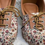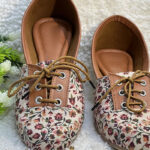 Step into sweet style with these charming light chocolate lace-up floral flats. The soft light chocolate base is adorned with a delightful floral print in warm tones of burgundy, cream, and sage green, creating a whimsical and feminine design. The classic lace-up detail with matching light chocolate laces adds a touch of vintage charm and allows for an adjustable fit, perfect for navigating the streets of Jhansi. Comfortable for all-day wear in the Uttar Pradesh climate, these flats are ideal for adding a touch of floral beauty to your casual outfits.