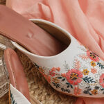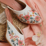 Step into delightful elegance with these charming pink embroidered mules. The soft pink base is beautifully adorned with intricate embroidery, which appears to feature delicate floral or abstract patterns, adding a touch of graceful femininity and artistic detail. The comfortable slip-on style makes them perfect for everyday wear, while the detailed artistry ensures they stand out. These mules are ideal for adding a subtle pop of color and elegant flair to your ethnic or contemporary looks, suitable for various events.
