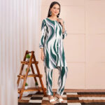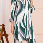 Stand out in chic contemporary style with this Chic Green & White Wave Print Co-ord Set. Designed with a striking wavy abstract pattern in deep green and crisp white, this set features a longline kurta with button-down detailing and matching straight-fit trousers. The soft, breathable fabric ensures all-day comfort while keeping your look polished and trendy. Perfect for casual gatherings, outings, or semi-formal occasions, this co-ord set is the perfect blend of comfort and elegance.