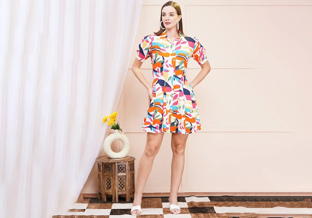 • Bold Abstract Leaf Print: A mix of vivid colors for a standout look.