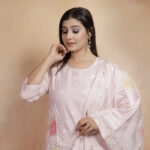 Style this beautiful light pink floral ethnic suit set with simple jewelry and comfortable flats to create an effortlessly elegant and charming appearance.