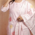 Embrace subtle charm with this Delicate Light Pink Floral Embroidered Suit Set. The soft light pink hue provides a graceful and feminine touch, beautifully complemented by the intricate floral embroidery in shades of white, pink, and yellow. The dupatta features a beautifully detailed border, adding to the overall elegance of the ensemble. Crafted for comfort and style, this set is perfect for adding a touch of understated elegance to your daytime events or casual gatherings.