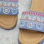 Add a touch of timeless grace and artistic detail to your step with these beautiful blue embroidered mules!