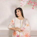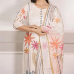 The lightweight fabric drapes beautifully, ensuring a breezy, comfortable fit. The minimal embroidered neckline adds a touch of understated charm, while the flowing floral-printed dupatta elevates the entire look with a whimsical appeal. The half sleeves provide a contemporary touch, making it suitable for all-day wear.