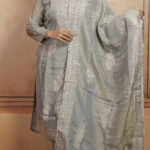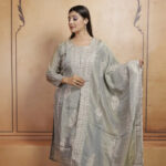 Step into understated elegance with this beautiful Elegant Light Grey Embroidered Suit Set with Subtle Shine. The soft, luminous light grey fabric is delicately adorned with subtle embroidery, adding a touch of refined detail. Crafted for a comfortable and graceful fit, this ensemble is perfect for adding a touch of subtle sophistication to your special occasions or festive gatherings.