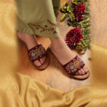 Step into sophisticated style with these elegant maroon embroidered mules. The rich maroon base is beautifully adorned with an intricate pattern, featuring delicate floral and potentially geometric elements. The detailed embroidery showcases fine craftsmanship and adds a touch of artistic flair. The comfortable slip-on style makes them perfect for everyday wear, while the detailed artistry ensures they stand out. These mules are ideal for adding a touch of refined elegance to your ethnic or contemporary looks.