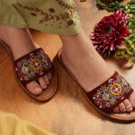 Add a touch of timeless elegance and artistic detail to your step with these beautiful maroon embroidered mules!