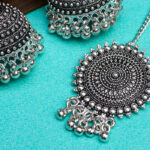Elegant Oxidized Silver Jhumka Earrings with Maang Tikka | Traditional Ethnic Jewelry