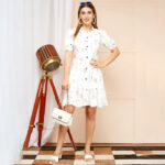 Pair with wedge sandals, a structured handbag, and statement earrings for a fresh and polished daytime look.