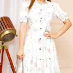 Elegant White Pastel Floral A-Line Shirt Dress