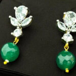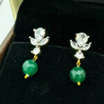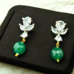 Dangling below the shimmering stud is a bold and striking green gemstone bead, adding a beautiful contrast to the dazzling white stones. The rich emerald-green hue represents prosperity, renewal, and a connection to nature, making it a meaningful and elegant choice. The bead is smoothly polished, giving it a luminous and glossy finish, while the gold-tone connector adds a subtle yet rich touch, perfectly complementing the design.