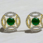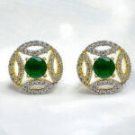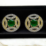 The fusion of gold, silver, and emerald hues makes these earrings an opulent choice for any occasion—be it an elegant soirée, a wedding function, or a festive celebration. Crafted with precision and attention to detail, these studs ensure both style and comfort, making them perfect for all-day wear. Whether you pair them with traditional ethnic attire or modern ensembles, these earrings will undoubtedly enhance your look with a touch of royalty.