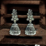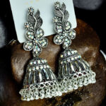 Floral Crystal Studded Oxidized Silver Jhumka Earrings | Ethnic Glamour