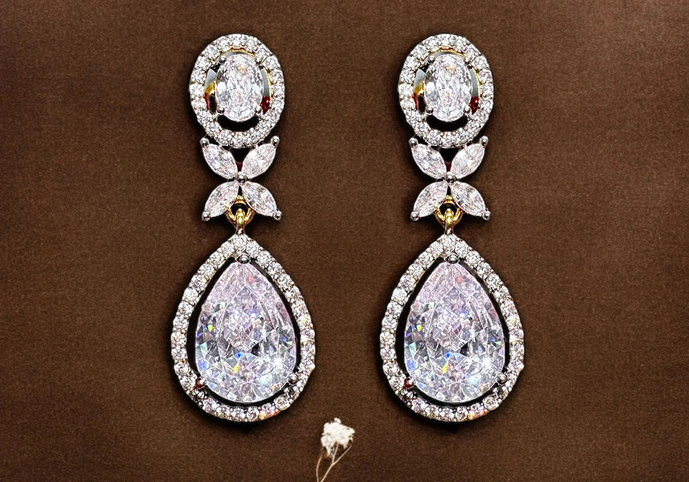 Designed to exude grace and sophistication, these earrings are crafted with high-quality materials and a premium silver finish, ensuring a timeless addition to your jewelry collection. Whether paired with an opulent evening gown or a traditional saree, they add a touch of magnificence to any look. Ideal for weddings, formal occasions, and festive celebrations, they make a stunning statement wherever you go.