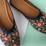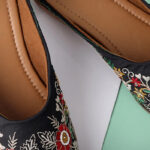Step into a world of elegance and tradition with our Midnight Blossom Hand-Embroidered Jutti — a classic black beauty adorned with vivid floral embroidery. Carefully handcrafted, this jutti showcases an array of red, green, yellow, and white threadwork that brings to life a garden of intricate blossoms on a midnight canvas.