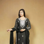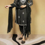The matching pants and lightweight dupatta complement the look with a balanced design that keeps it elegant yet eye-catching. Made from a soft and breathable fabric, this suit set ensures comfort while offering a regal silhouette perfect for festive nights, cultural functions, or elegant evening gatherings.