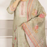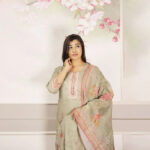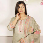 Exude understated elegance with our Nargis Olive Embroidered Soft Cotton Suit Set, where earthy tones meet delicate floral craftsmanship. This three-piece cotton ensemble is designed in a soothing olive green shade, elevated by intricate thread embroidery and sequin work along the neckline and sleeve cuffs. The straight-cut kurta features floral accents that are both subtle and eye-catching, bringing a balance of grace and minimalism.