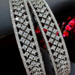 Elevate your style with these Radiant Diamond-Studded Chandelier Bangles, a perfect blend of elegance and luxury. Crafted with precision, these bangles feature dazzling diamonds set in a radiant white finish, making them ideal for weddings, parties, and festive occasions. The intricate design enhances their sparkle, adding a touch of sophistication to any outfit. Lightweight yet sturdy, these handcrafted bangles offer timeless beauty and unmatched craftsmanship.