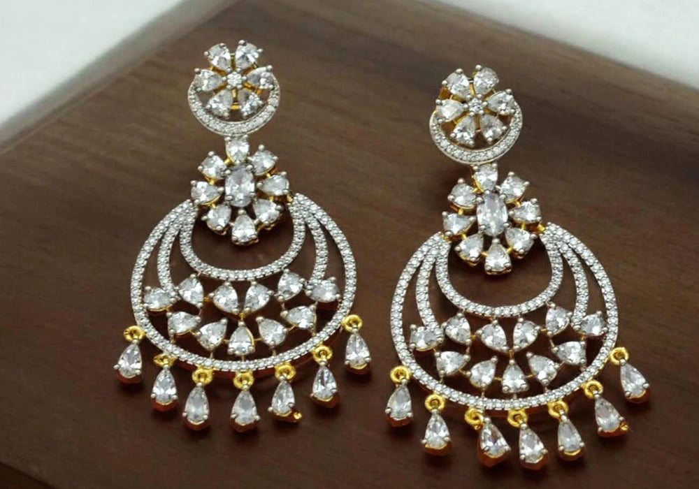 Unveil the epitome of grace and grandeur with these Regal Crystal Chandelier Earrings, an exquisite piece designed to captivate hearts. Adorned with sparkling teardrop-cut zircon stones, these earrings exude a luxurious charm that complements traditional and contemporary outfits alike. The intricate layered crescent design, embedded with dazzling cubic zirconia, showcases masterful craftsmanship, making them a must-have accessory for special occasions.