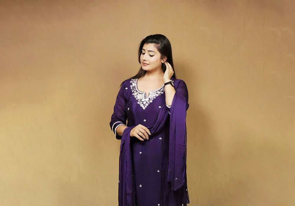 Royal Purple Embellished Ethnic Suit SetRoyal Purple Embellished Ethnic Suit Set