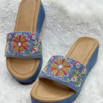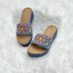 Step into modern elegance with these stylish blue mules. The vibrant blue base provides a striking backdrop for the intricate geometric design, which adds a contemporary and artistic touch. The comfortable slip-on style makes them perfect for everyday wear, while the detailed craftsmanship ensures they stand out. These mules are ideal for adding a refreshing pop of color and sophisticated flair to your ethnic or modern outfits, suitable for various occasions.