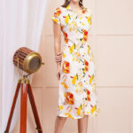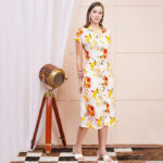 White Floral Bloom Print Midi Shirt Dress